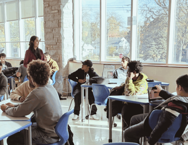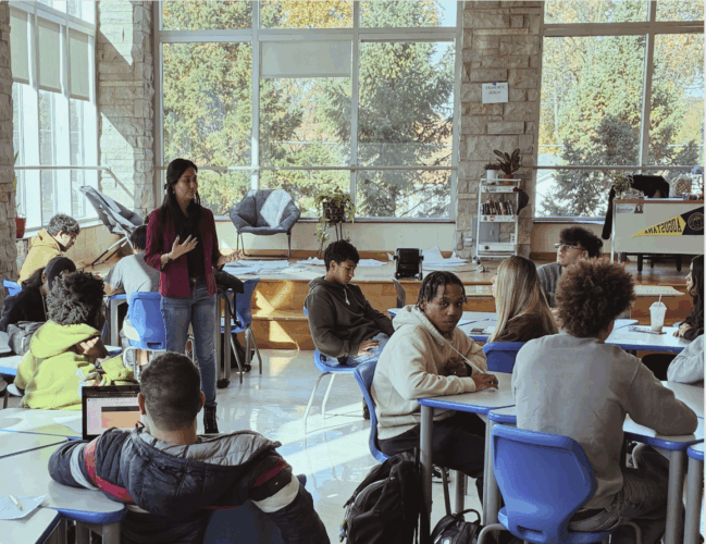 La representante estatal de Illinois, Barbara Hernandez, regresó a su antiguo instituto, East Aurora High School, el 6 de noviembre para hablar con los estudiantes del programa INCubator, impartido por Mark Lyons. La Sra. Hernandez compartió su experiencia como legisladora en esta clase, que se desarrolla al estilo del programa Shark Tank, respondiendo a las preguntas de los estudiantes sobre sus productos y los aspectos legales de Illinois que podrían afectarles. También respondió preguntas sobre la ayuda que el estado ofrece a las pequeñas empresas. La representante Hernandez dedicó tiempo a hablar con cada uno de los grupos sobre su producto y a analizar los pasos que deben seguir desde una perspectiva legal para lograr su objetivo de crear su producto antes de que finalice el año escolar.